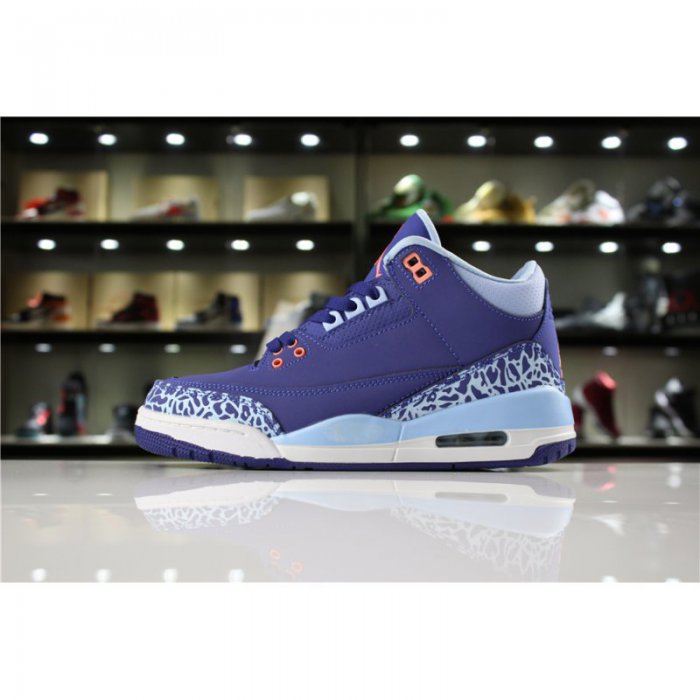 This Air Jordan 3"Dark Purple Dust" colorway is a Grade School exclusive Air Jordan 3. The Air Jordan 3 Purple Dust brings a smooth Dark Purple Dust nubuck base to the iconic silhouette while touches of a Carolina Blue land on the midsole and elephant print for a unique twist to the Jumpman classic. The predominantly purple sneaker features a supple leather upper with hits of blue taking over the elephant print at the forefoot and heel, as well as the collar and inner lining, while pink accents are seen across the eyelets and branding on the tongue. A white midsole round out the sneaker with a crisp finish.