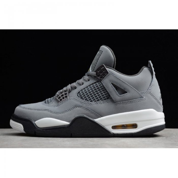 The"Cool Grey" Air Jordan 4s. One of the most highly regarded non OG AJ4s, the"Cool Grey" first released in 2004, and features a grey nubuck upper with both black/grey accents, plus a silver Jumpman on the heel for a slight touch of flash on an otherwise understated sneaker. Small yellow accents then arrived on both the tongue and outsole branding to complete the look. Black accents on the eyelets match the midsole and outsole, while the only bit of color appears on the yellow Air unit and Jordan 4 lettering on the tongue. Similar to many of the silhouette's line of reissues, this style implements the Jumpman logo on the heel instead of Nike Air branding.