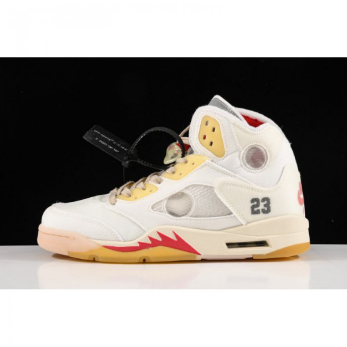 2020 OFF-WHITE x Air Jordan 5 White/Fire Red CT8480-002 For Sale