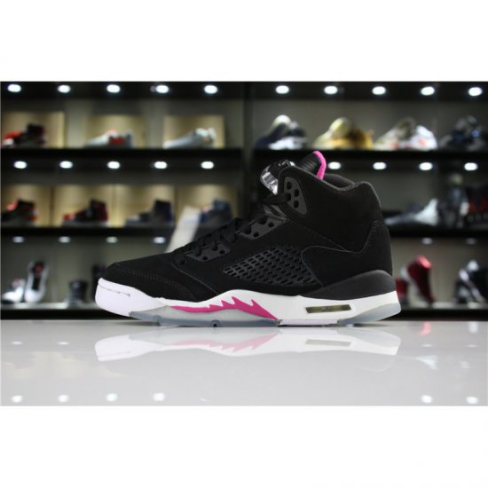 The Air Jordan 5 Deadly Pink is a brand new Grade School (GS) Air Jordan 5 releasing in August. Jordan Brand expands their Girls Collection with this new look. The shoe starts with a black nubuck upper, blacked out mesh panels and a stripe-textured tongue. A hue known as Deadly Pink subtly complements the look on the tongue lining and"teeth," while a white midsole and blue-tinted translucent outsole caps off the look.